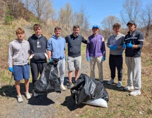 In recent days, students from the University of Scranton Men’s Soccer Team and Scranton Preparatory School spent time along the trail doing what needs to be done this time of year. Gloves on, bags in hand, they cleared litter, pulled debris, and covered a lot of ground.